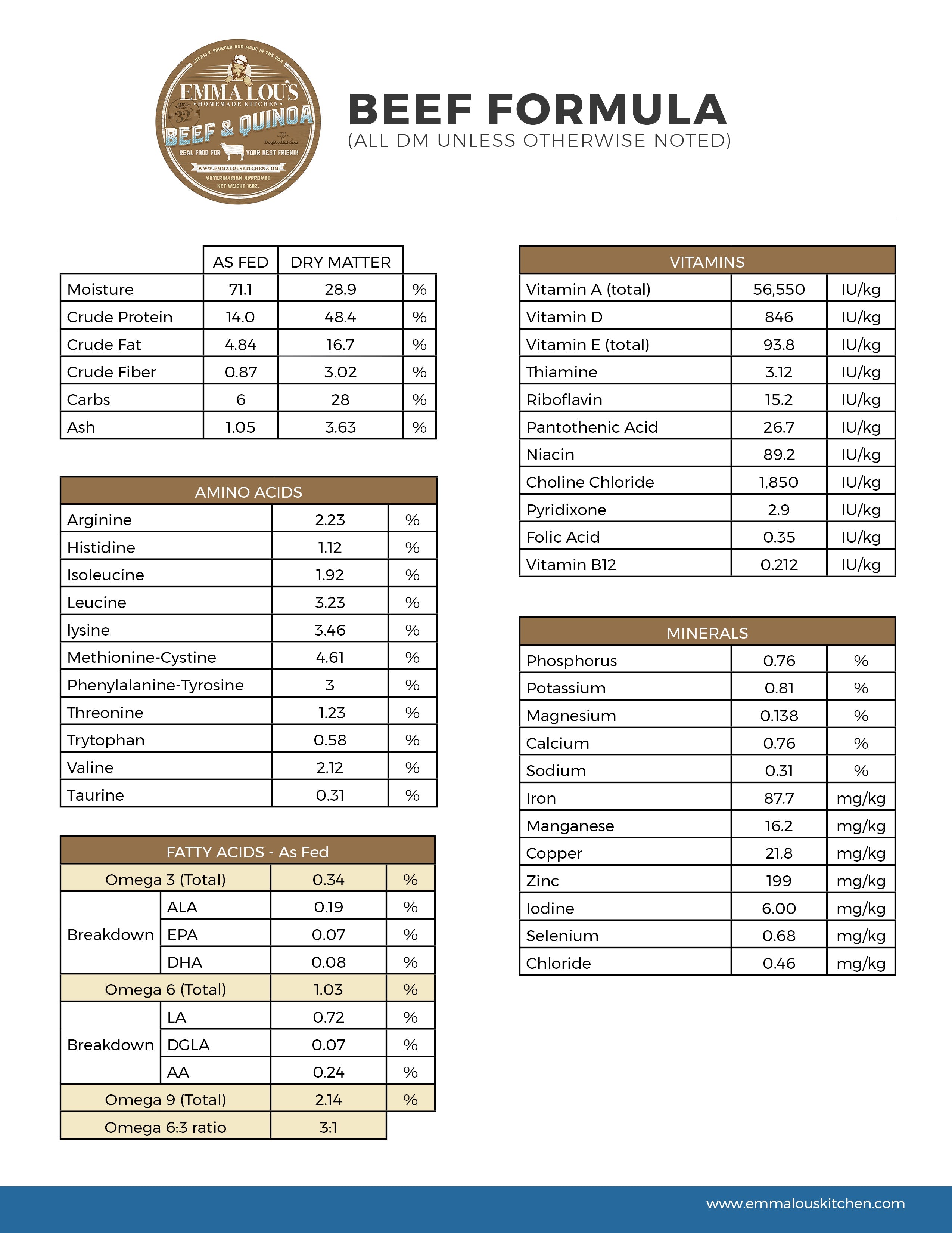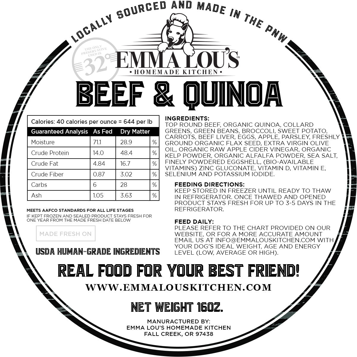 - Emma Lou's Homemade Kitchen is Human Grade quality, No Additives, Always Fresh, All Natural Ingredients, Easy To Serve and Environmentally Sound.